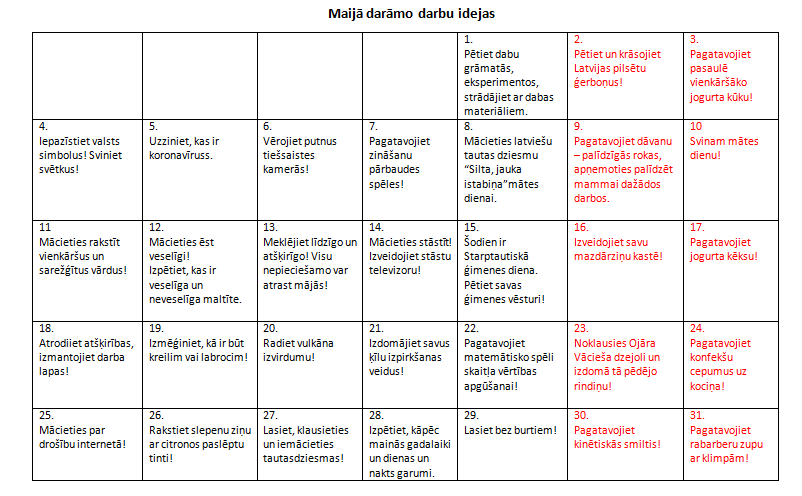 Vecākiem un bērniem darāmo darbu idejas. 🙂