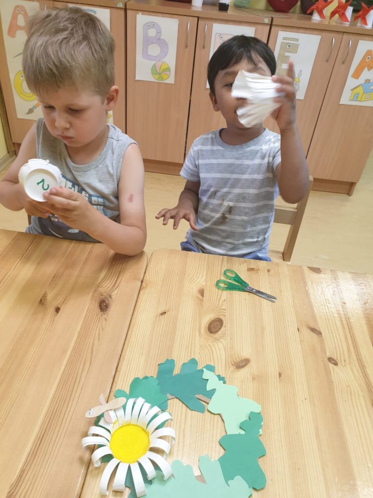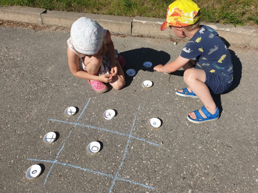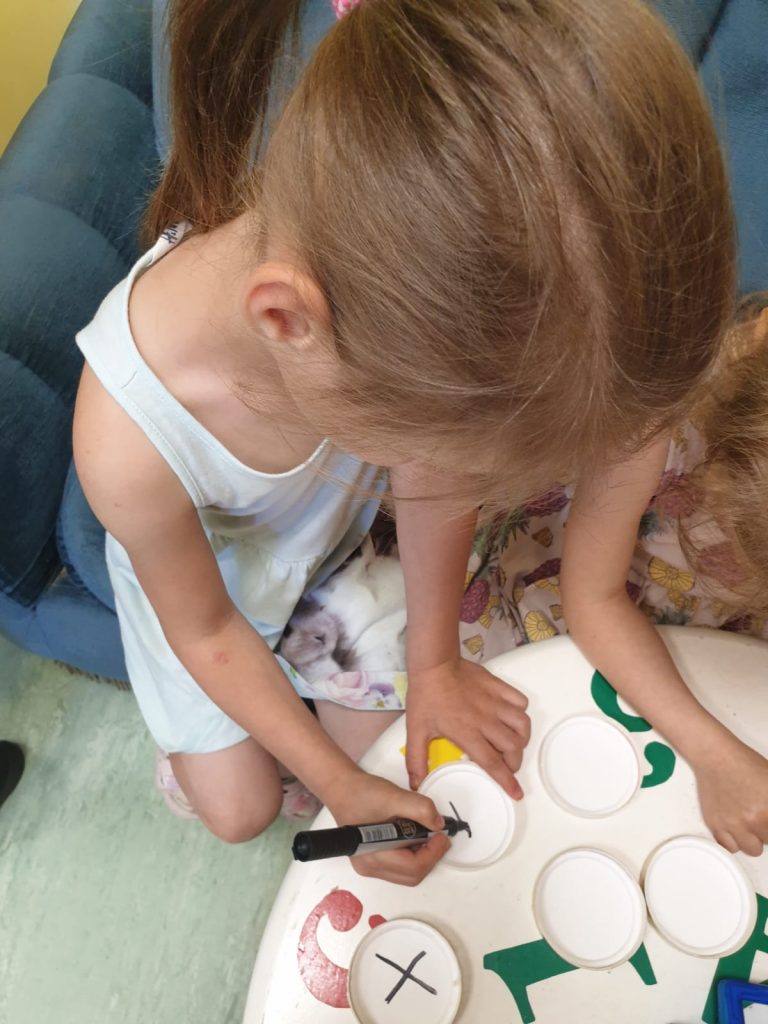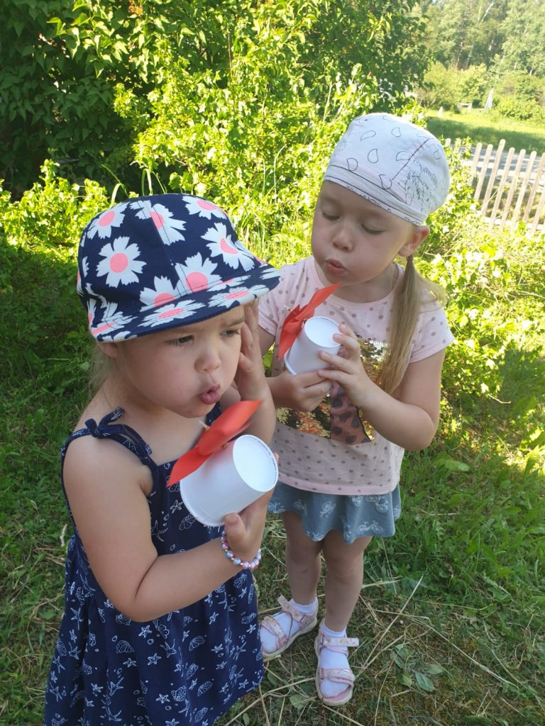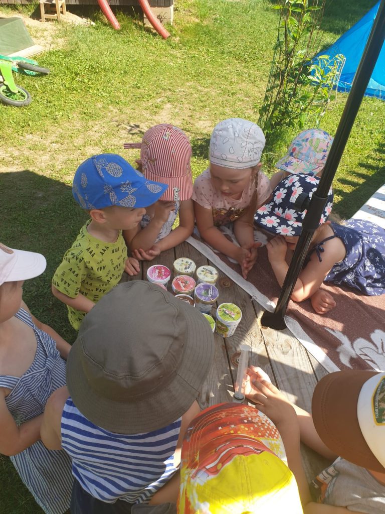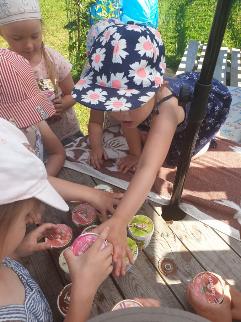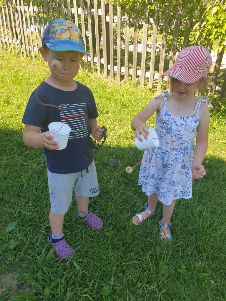 Kad saldējums apēsts un punči pilni sākās rotaļu laiks. Tukšos saldējuma trauciņus izmantojām spēlēm un svētku dekorācijām.