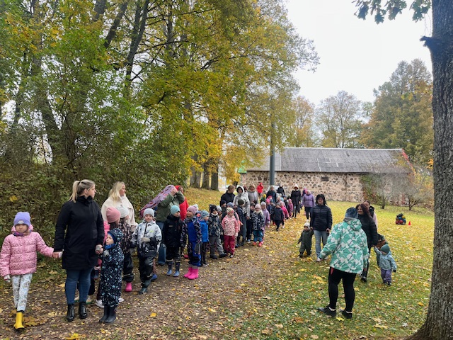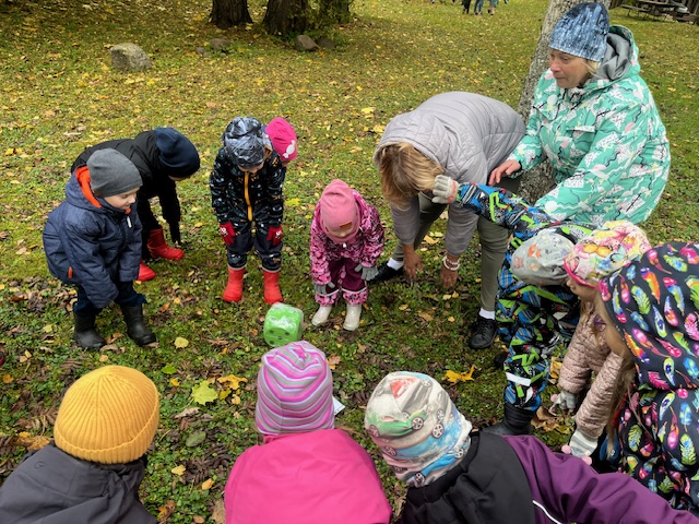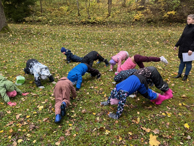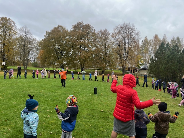 Jau 14 .gadu pēc kārtas Latvijā no 13.-19.oktobrim norisinās Latvijas Veselības sporta nedēļa. Tās ideja ir mudināt ikvienu Latvijas iedzīvotāju vairāk iesaistīties fiziskās aktivitātēs, lai pēc Veselības nedēļas cilvēki vairāk sportotu patstāvīgi. Tāpēc arī mēs šo nedēļu iesākām ar sportiskām aktivitātēm – vispirms devāmies kopīgā pārgājienā ap mūsu iestādes teritorijas dīķi. Pēc tā katrs izstāstīja ko ir saskatījis, sadzirdējis un pat sasmaržojis. Katrai grupai bija jāveic arī dažādi uzdevumi atbilstoši savam vecumam, tie bija gan sportiskās aktivitātes, gan uzdevumi citās mācību jomās.