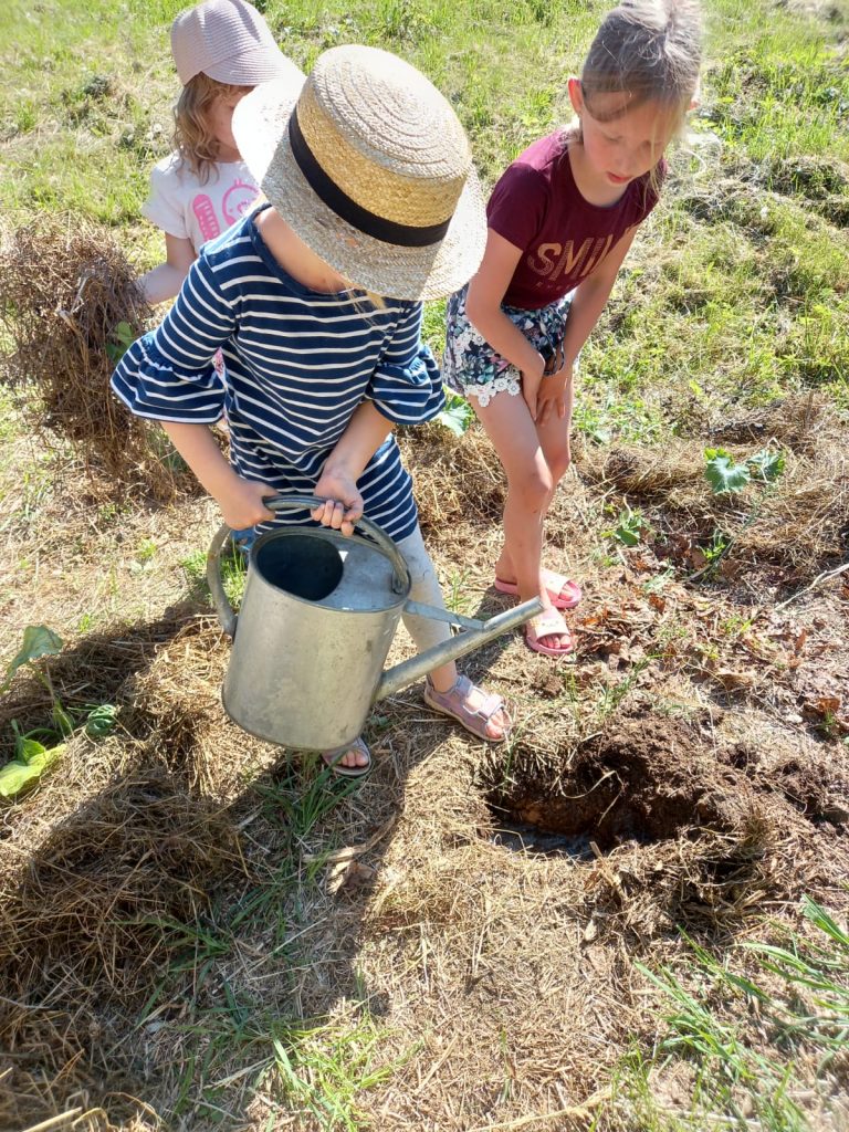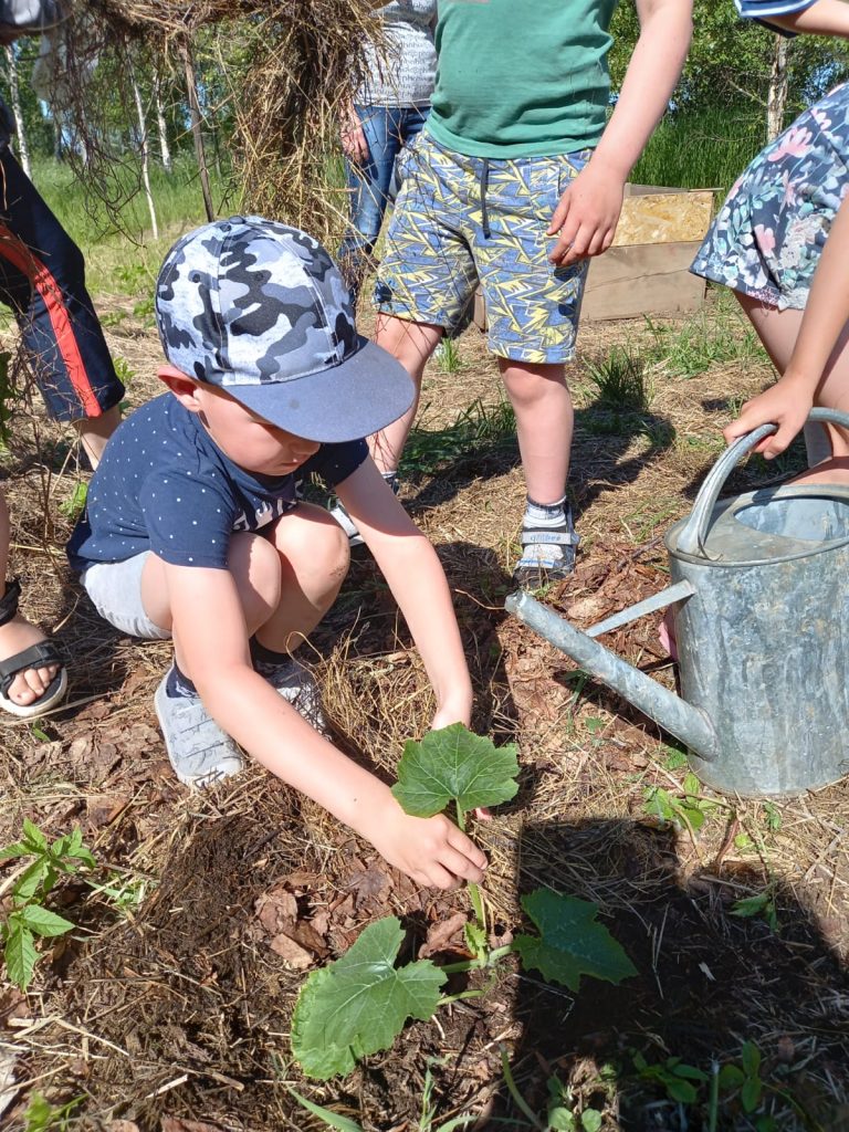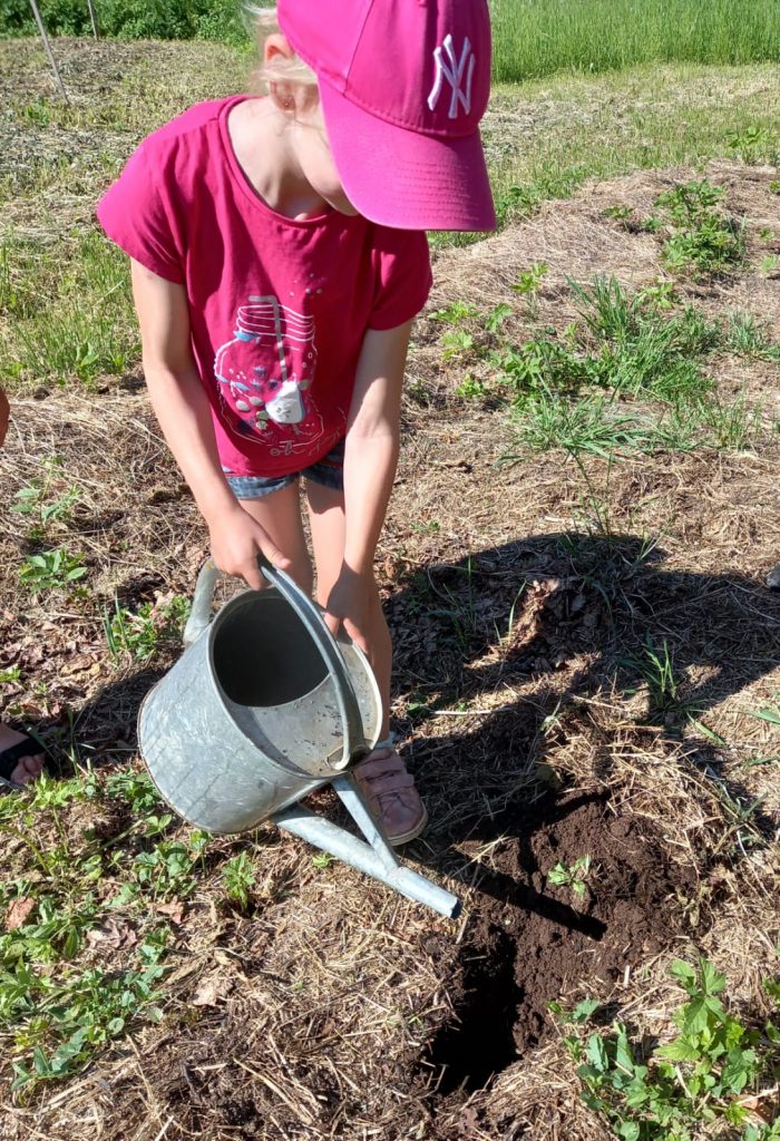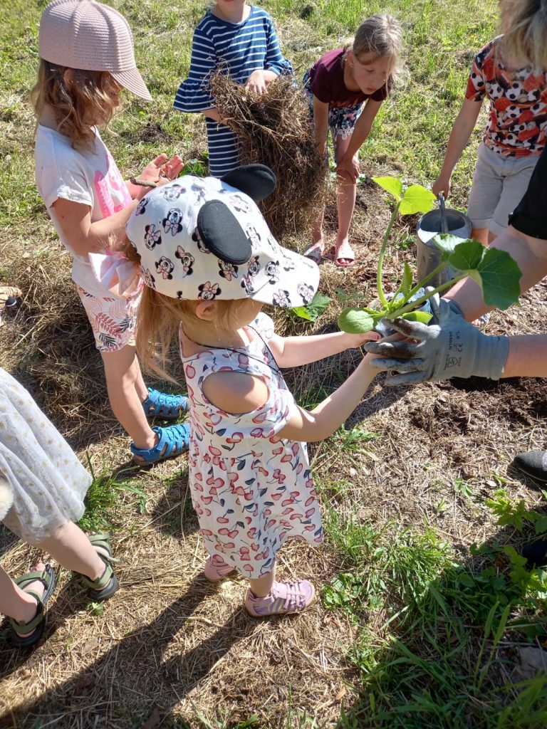 Šodien Zīļuku grupas bērni papildināja bērnudārza permakultūras dobi ar jaunu kartupeļu šķirni un 7 kabačiem.