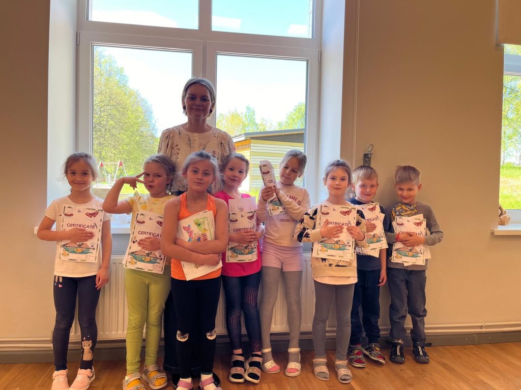 Šodien noslēdzās angļu valodas nodarbības, kuras tika īstenotas visu mācību gadu izglītojamiem, kuru vecāki izvēlējās apmācību iestādē, sadarbībā ar “SIA Rīgas 1.valodu skolu” https://vs.edu.lv/. Foto “Kastanīšu” grupas bērni kopā ar Rīgas 1.valodu skolas skolotāju Zaigu priecīgi par labām angļu valodas zināšanām, aizejot uz skolu. Kā apliecinājumu par to tika saņemts arī sertifikāts! Lai arī skolā nezūd interese par angļu valodu!