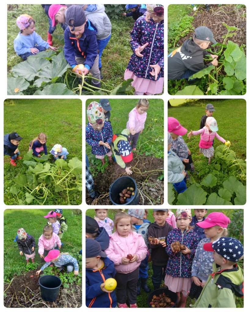 Šodien, 3.septembrī, Bitīšu grupas bērni pastāstīja, kur aug kartupeļi, kas nepieciešams, lai tos noraktu, un ko no tiem var pagatavot. Tad visi devās uz grupas permakultūras dobi, lai pirmo ražu nogādātu iestādes saimniecēm. Ķirbji grupas permakultūras dobē šogad gan neizauga, bet to varenās lapas un stīgas tika atstātas, lai pabarotu permadobes zemi nākamajai ražai.