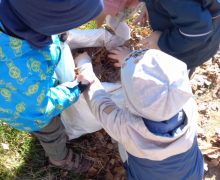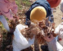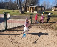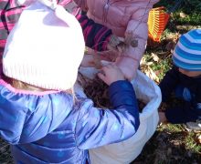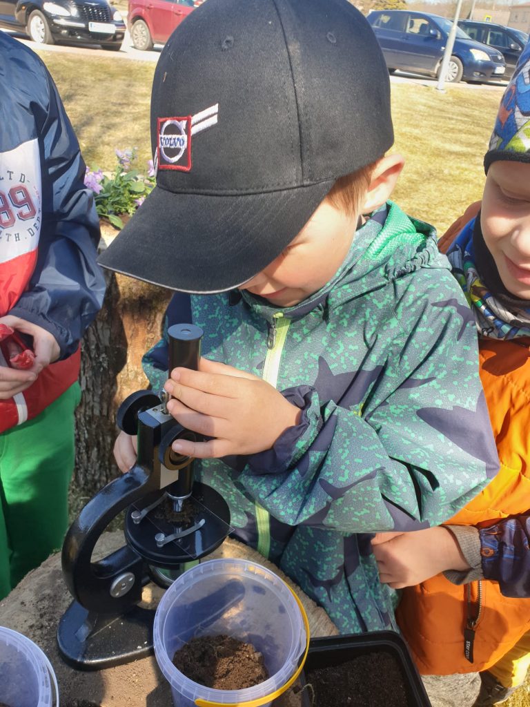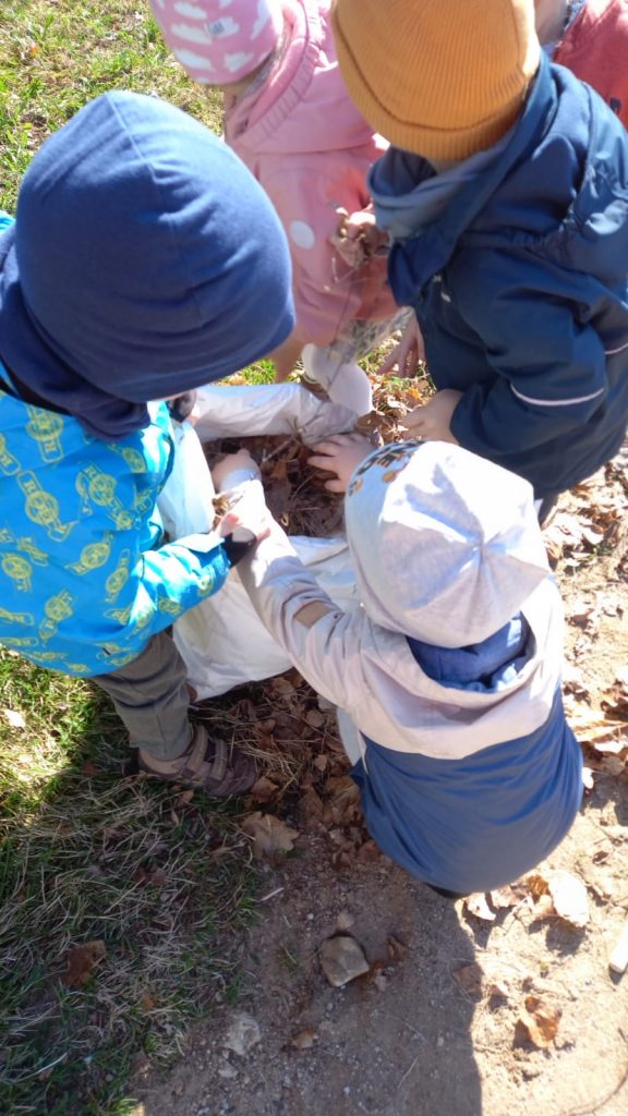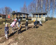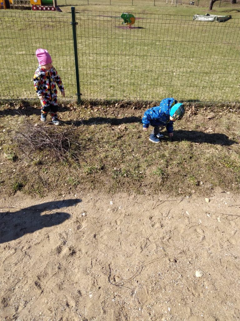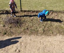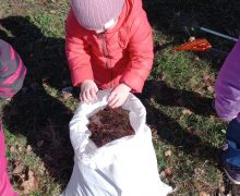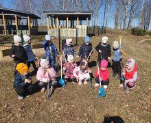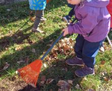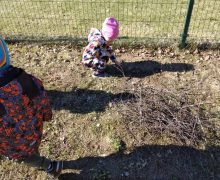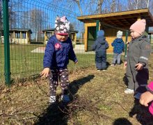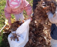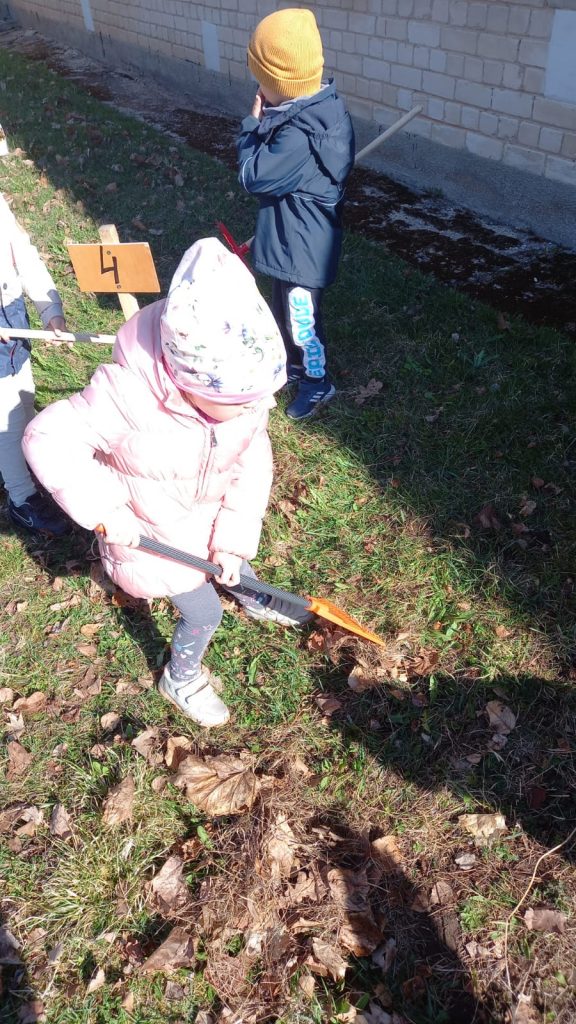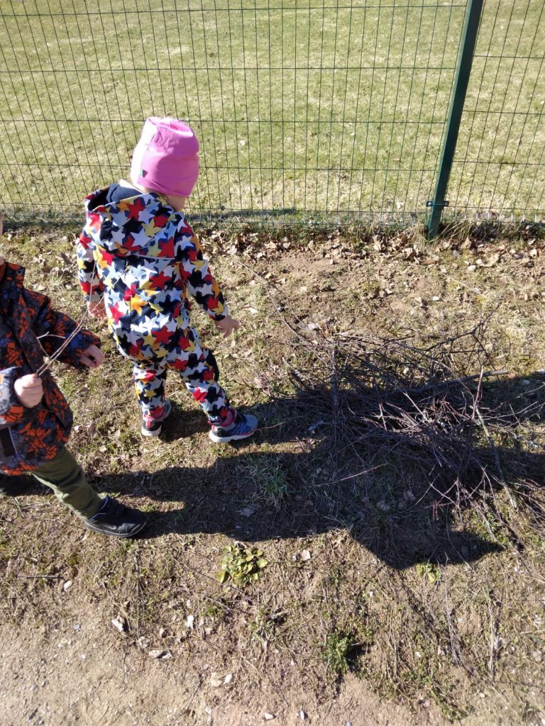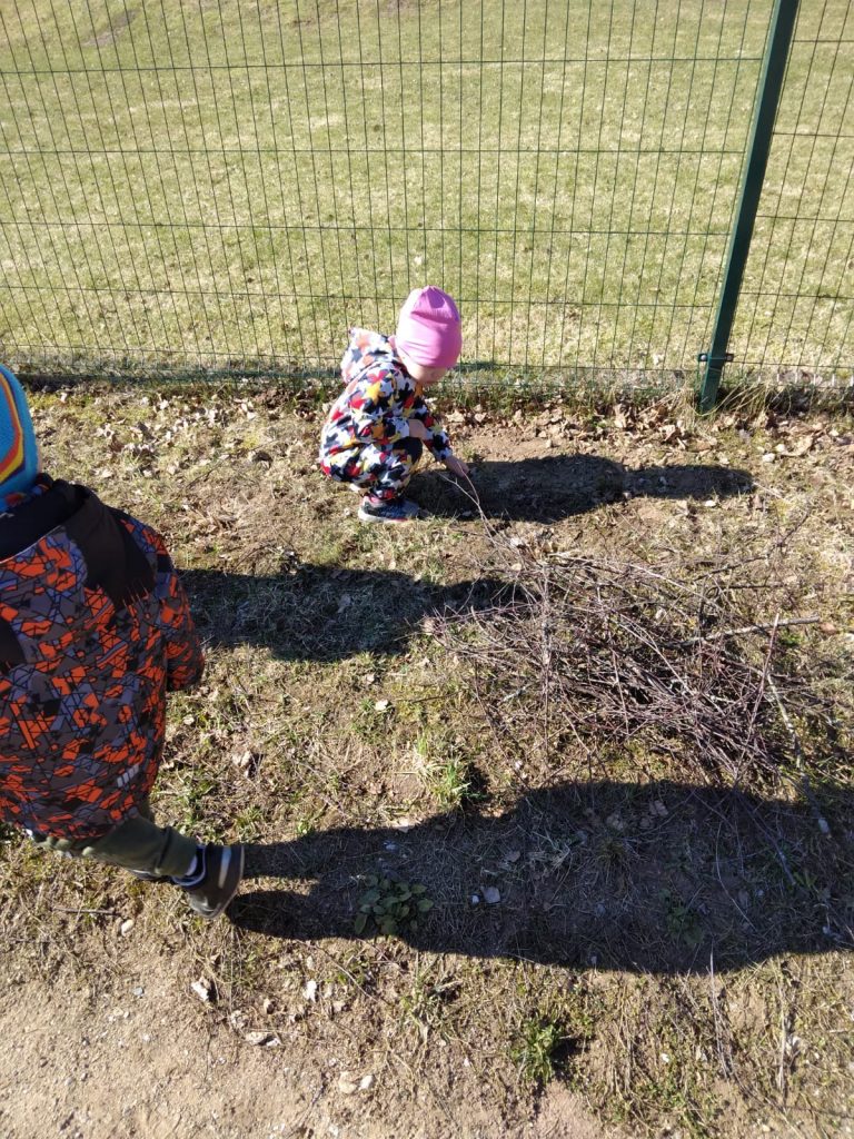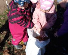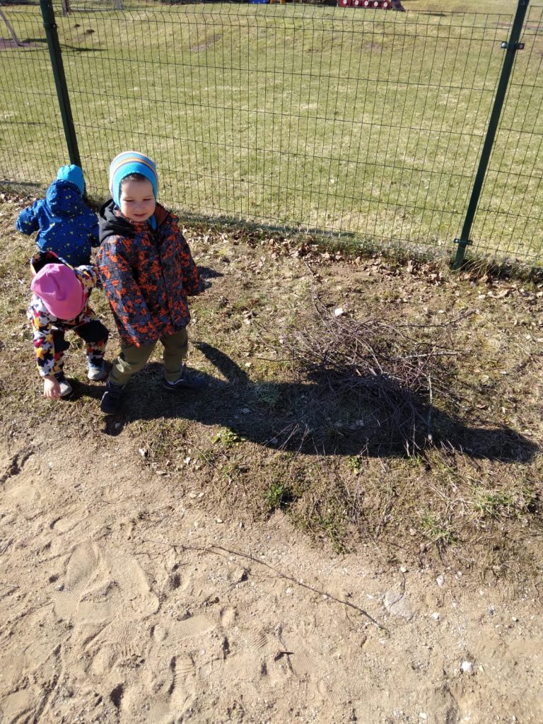 Grupām bija sagatavoti uzdevumi atbilstoši vecumam – sadalītas teritorijas, ko katra grupa apņēmības pilni devās sakopt! Grāba lapas un lika maisos, ko vēlāk izbēra komposta kaudzēs, gan vāca žagarus, ko negantais vējš nolauzis kokiem!