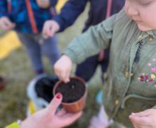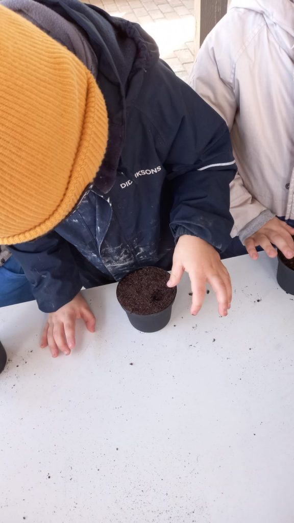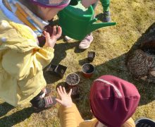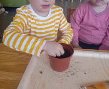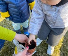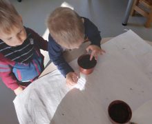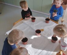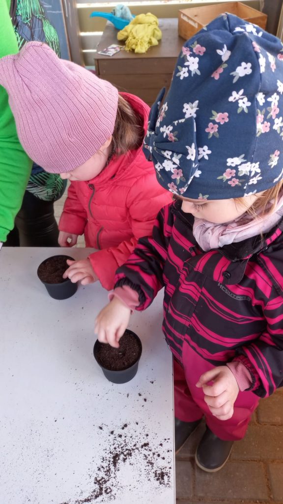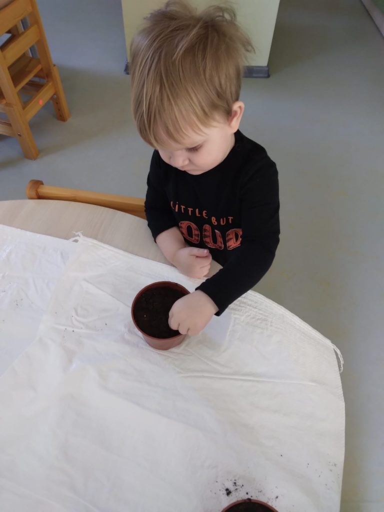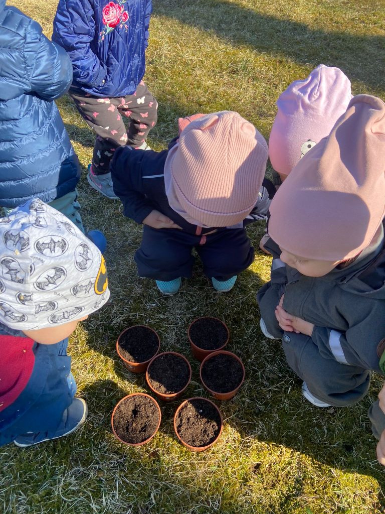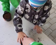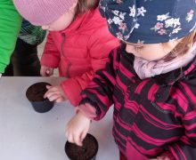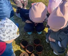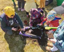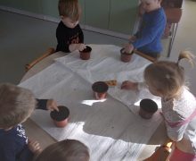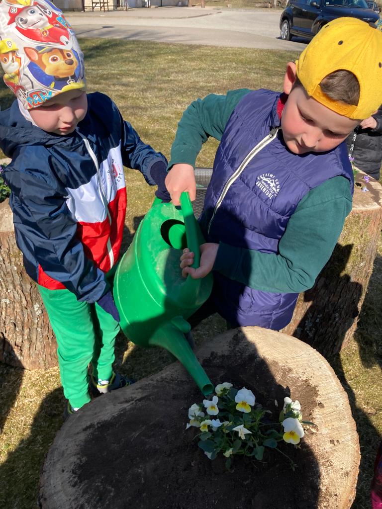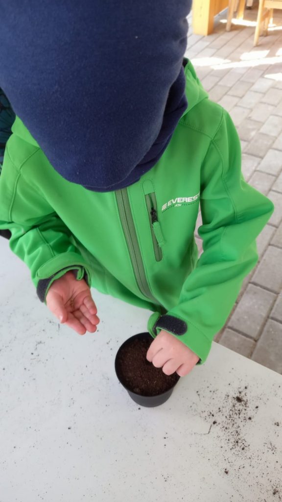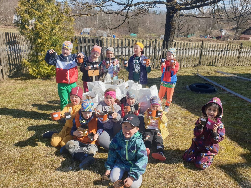 Tāpat arī tika sētas puķes, kuras vēlāk stādīsim iestādes teritorijā – samtenes un saulespuķes. Vai pamanīji, cik skaisti celmi pie iestādes? Par to parūpējās ”Zīļuki” iestādot atraitnītes!