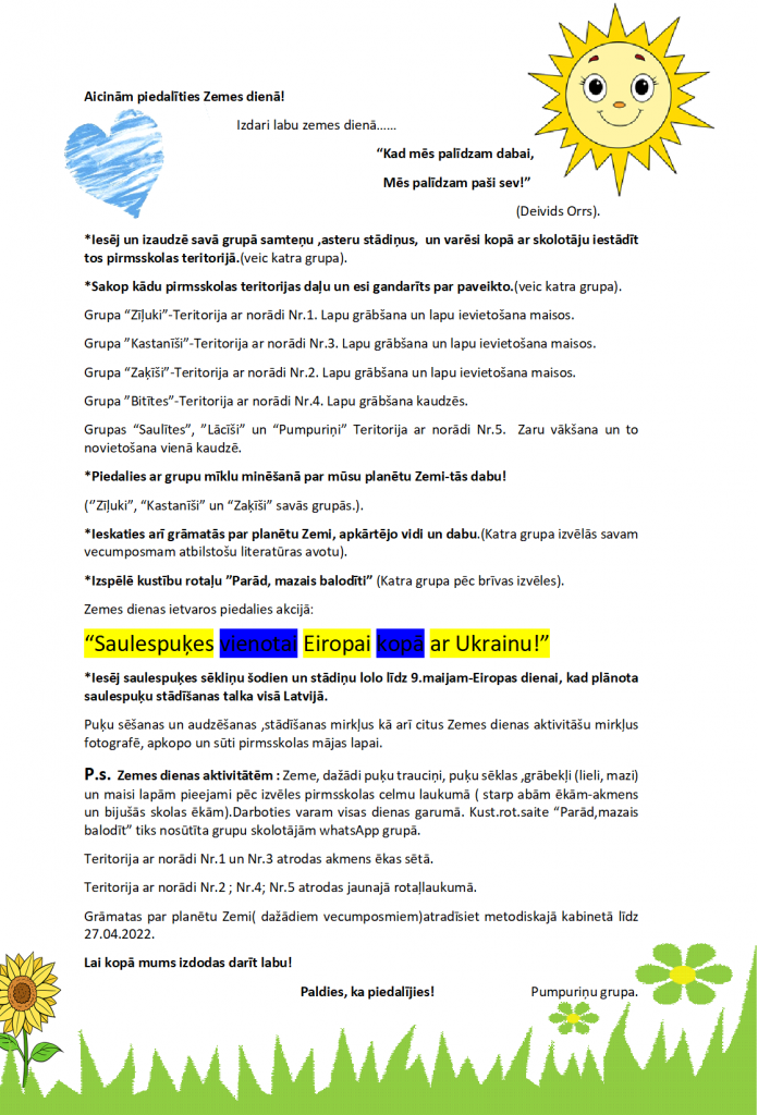 Šodien, 22. aprīlī, mūsu iestāde atzīmēja Zemes dienu!